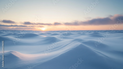 Calm ocean waves at sunset with soft clouds in the sky