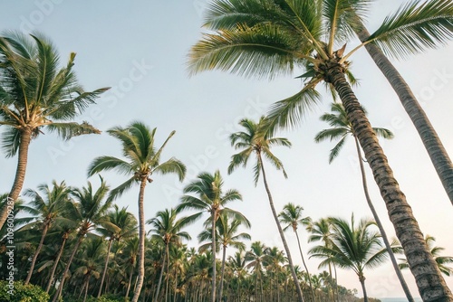 Calming Tropical Palm Tree Pattern with Woven Trunks and Leafy Greens, calming, leafy greens, tropical