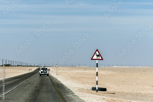 oman, desert, road, signs, camel, warning, traffic, highway, middle, east, dromedary, red, sand, symbol, sky, pole, danger, landscape, arabia, transportation, roadsign, crossing, blue, travel, asphalt, transport, sunny, animal, arabian, tarmac, flag, triangle, day, brown, horizon, summer, dirt, white, africa, arab, background, daylight, fence, triangular, adventure, street