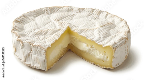 Camembert cheese shown on a white background