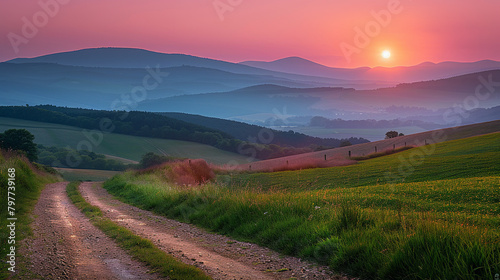 landscape, sky, mountain, nature, road, grass, mountain, field, hill, tree, cloud, panorama, sunset, green, summer, forest, meadow, sunrise, rural, countryside, cloud, travel, view, hill, path