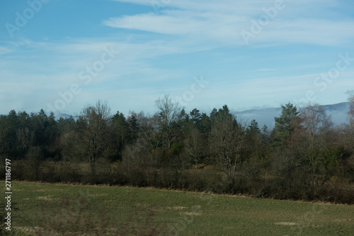 landscape, heaven, nature, grass, field, forest, cloud, green, shaft, meadow, summer, blue, rural, spring, country, countryside, forest, horizon, panorama, season, park, autumn, vale, france, mountain, jura, drill bit, route, car, mist