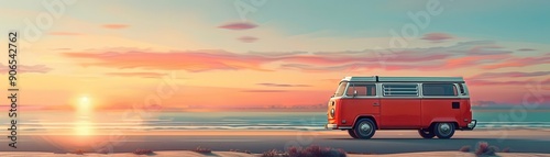 explore, draw, tour, gradient, pastel, seat, sunshine, rest, roof, vibrant, journey, sunrise, freedom, pack, transport, mobile, coastal, angle, high, fun, camp, brake, home, cartoon, art, copy, sunset, leisure, design, summer, landscape, park, view, flat, top