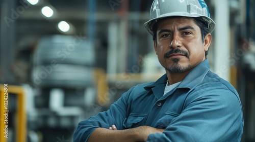 candid, confident, factory, men at work, industrial, male, hispanic, portrait, blue, collar, engineer, hard hat, safety, labor, teamwork, skilled, workplace, manufacturing, production, assembly, diversity, job, efficiency, craftsmanship, dependability, professionalism, dedication, life events, technology, tool, environment, site, operation, machinery, resilience, commitment, safety-gear, leadership, innovation, skill, empowerment, manpower, quality, process