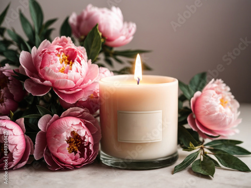 Candle Mockup Featuring Peony Flowers