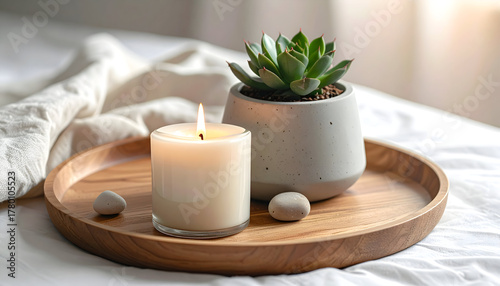 candle, succulent, plant, tray, wood, interior, relaxing, decor, light, natural, home, ambience, minimal, texture, zen, calm, peaceful, green, still, soft, colours, design, inspiration, aesthetic, cosy, detail, ceramic, white, smooth, modern, neutral, organic, elegant, vibrant, lifestyle, background, simple