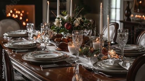 christmas dinner, candlelit, festive, decoration, elegant, dinnerware, centrepiece, candle, fine dining, table setting, seasonal, culinary, traditional, romantic, special occasion