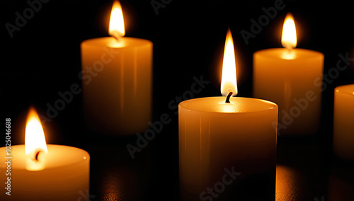 candles burning dark focus one foreground