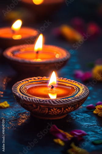 candles in the pot of Diwali Festival celebration of the lights for joy and prosperity