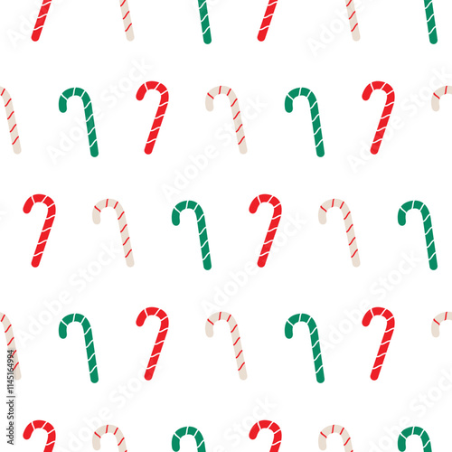 Candy Cane Seamless Pattern. Vector Illustration of Merry Christmas and Happy New Year Holiday Background. Winter Seasonal Greetings. Flat Style.