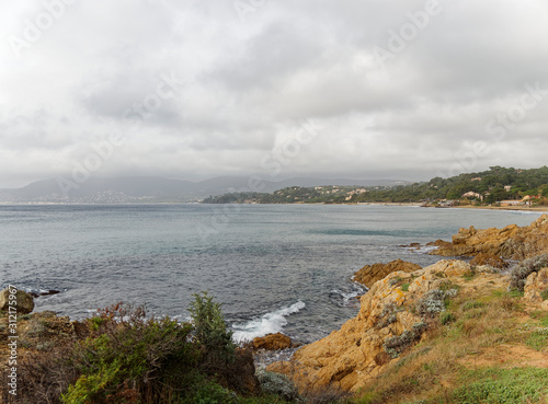 Cap Lardier dans le Var. Le Sentier du littoral avec vue sur la Croix Valmer, la plage de Girago et Cavalaire-sur-Mer
