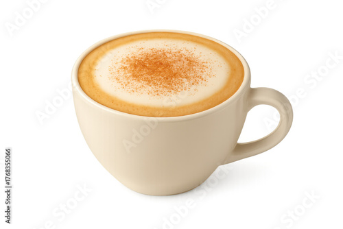 Cappuccino coffee drink in mug with cinnamon on transparent background