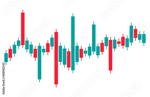 Captivating Candlestick Chart Depicts Financial Market Fluctuations in Teal and Red on Pure White