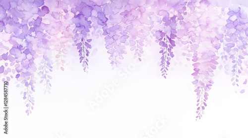 Captivating cascade of wisteria vines draping elegantly in shades of purple, embracing nature's beauty in watercolor art