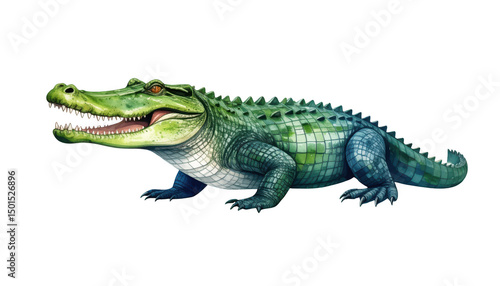Captivating closeup, green alligator with open mouth in its natural habitat green