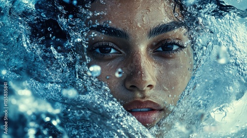 female, woman, portrait, water, splash, eye, face, underwater, gaze, expression, wet, closeup, droplet, person, nature, aquatic, beauty, serene, calmness, calm, sharpened, emotion, delicate, elegance, unique, texture, fluid, fresh