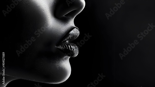 lip, mouth, face, closeup, profile, beauty, sensual, intimate, romance, passion, desire, woman, female, seductive, alluring, mysterious, moody, black-and-white, monochrome, dramatic, cinematic, emotional, captivating, mesmerizing, aethereal, atmospheric, evocative, expressive, intriguing, compelling
