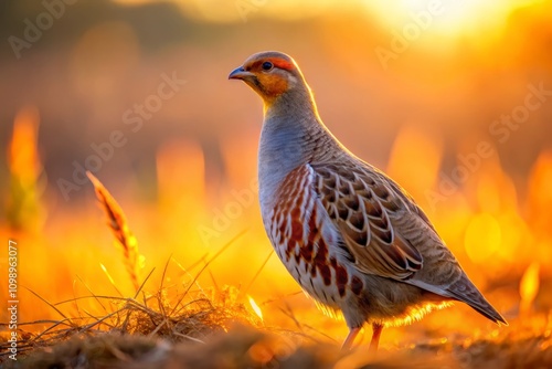 Captivating Low Light Photography of a Grey Partridge in its Natural Habitat, Showcasing the Bird's Unique Plumage and Behavior at Dusk