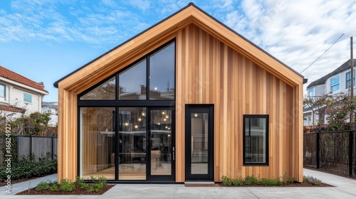 modern, house, design, architecture, siding, building, residence, facades, home, real, estate, exterior, wood, vertical, construction, contemporary, residential, structure, property, stylish, glazing, urban, area, outdoors, sky, glasses, panel, entrance, doorway, plant, courtyard, minimalist, simple, natural, sunlight, daylight, neighbourhood, fence, yard, peaceful, clean