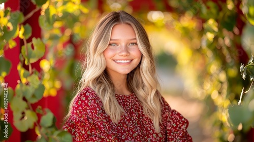 smile, portrait, young, woman, confidence, joy, greenery, nature, beauty, happiness, sunlight, outdoors, lifestyle, vibrant, expression, fresh, cheerful, floral, warmth, radiant, serene, glowing, candid, soft, charming, elegant, bright, idylli, peaceful, relaxed, blissful, casual attire, enchanting, delightful, stunning, scenery, picturesque, personality, ambience, artistic, colourful, engaging, lively, inviting, graceful, authentic, inspiring, carefree