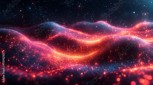 Captivating Showcasing Digital Waves Highlighted With Radiant Orange Particles And Bold Image