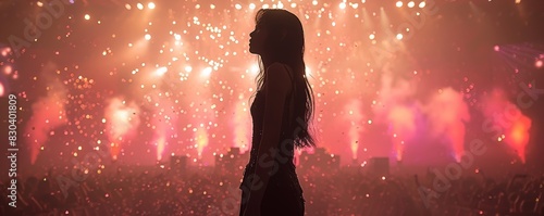 silhouette, woman, fireworks, night, event, crowd, celebration, light, explosive, vibrant, background, festival, illuminating, concert, people, entertainment, sparkle, atmosphere, party, audience, stage, light, bright, enjoyment, gathering, dramatic, illuminated, spectacle