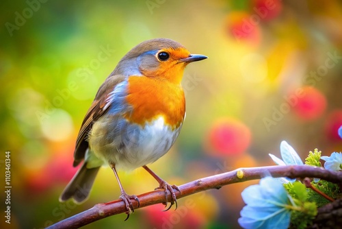 Captivating Tilt-Shift Photography of a Charming Robin Perched on a Branch Against a Softly Blurred Natural Background, Showcasing Nature's Beauty and Delicate Details
