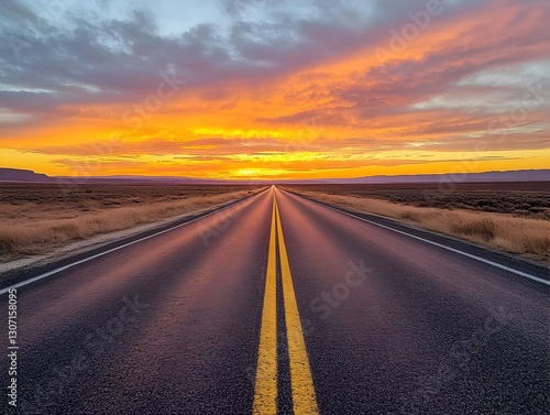 Captivating view of an endless road stretching into the distant horizon under blue sky