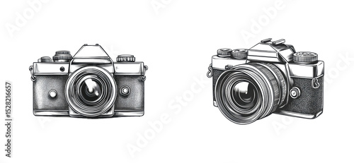 Capturing moments vintage cameras studio artistic style. Isolated png set
