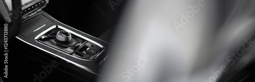 Car dashboard with gear shift lever and place for text