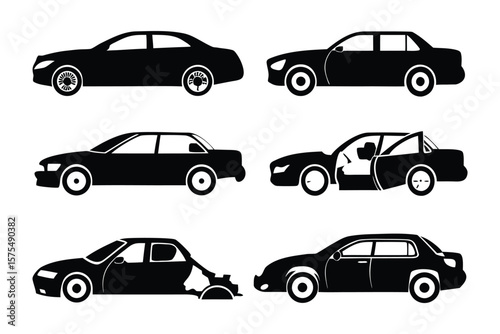 Car Silhouette Collection: A sleek collection of car silhouettes, showcasing a variety of vehicle styles from classic to modern, perfect for automotive design projects.