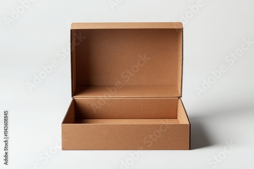 Cardboard box open flaps empty interior brown color corrugated texture