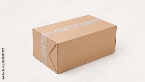 Cardboard Box Tightly Taped and Isolated on a Clean White Surface