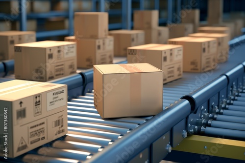 box, conveyer belt, factory, logistic, warehouse, cardboard box, distribution, industry, transport, delivery, supply, chain, automated, cargo, shipping, closeup, storage, technology, equipment, parcel, workflow, efficiency, handling, manufacturing, business, operation, process, streamline, packing, system