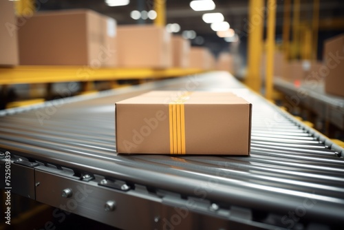 Cardboard boxes parcels on a conveyor belt, transport goods delivery and logistics, logistics warehouse
