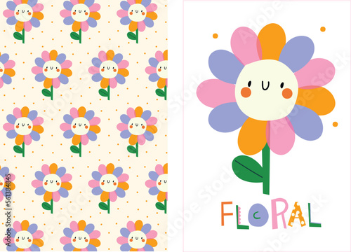 Cards template in vector with colorful flower isolated and floral bright pattern