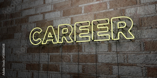 CAREER - Glowing Neon Sign on stonework wall - 3D rendered royalty free stock illustration. Can be used for online banner ads and direct mailers..