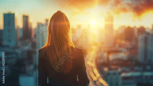 woman, watch, urban, sunrise, rooftop, contemplate, city, life, new, begin, silhouette, sunlight, dream, career, sky, skyline, sharpened, culture, overlook, workplace, personal, hope, fulfillment, corporate, attire, modern, journey, business, company, success