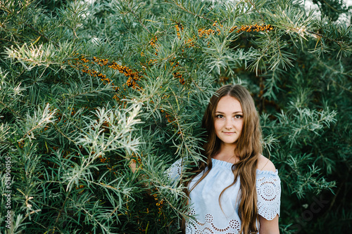Carefree girl outdoors. Portrait of beautiful woman in park.