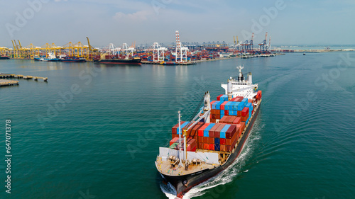 cargo logistic container ship sailing in sea to import export goods and distributing products to dealer and consumers worldwide, by container ship Transport, commercial port background,