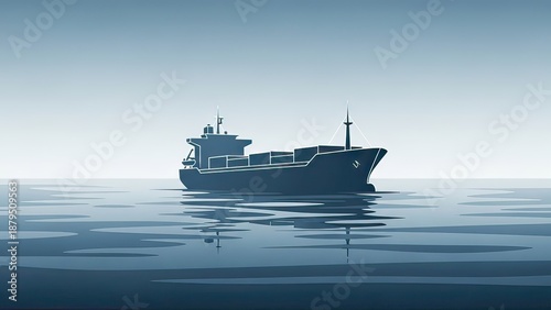 Cargo Ship Sailing Smoothly on Serene Waters at Dawn - Tranquil Marine Scene
