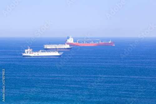 Cargo ships in the Mediterranean sea, container , shipping , logistics , transportation Systems