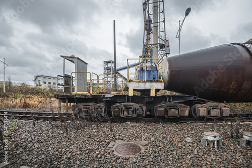 cargo trains stopped on old railroad in abandoned industrial site