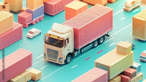 freighter, transport, import, export, design, navigation, three-dimensional, pastel, container, truck, plane, road, connect, international, global, trade, delivery, infrastructure, planning, coordination, management, business, illustration, transportation