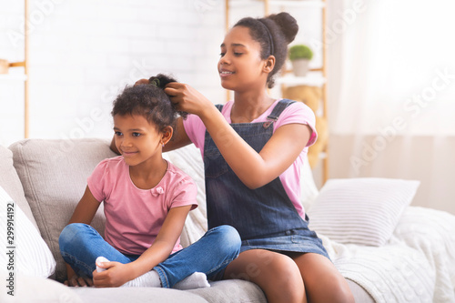 bright, brush, comb, comfortable, cute, cosy, female, family, children, girl, people, friends, game, home, happy, afro, black, childhood, 2, fun, hair, hairbrush, african american, leisure, coiffure, together, kindergartner, healthy, adorable, sibling, sister, teenage, playful, little, children, copy space, small, rest, free space, empty space, sitting, beauty, salon, hairdresser, care, casual attire, cheerful, lifestyle