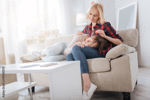 Caring girlfriend. Nice pleasant young woman looking at her girlfriend and caring about her while expressing her love