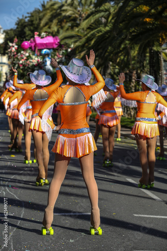 carnival, costume, clothes rack, disguise, mask, mask, fanfare, france, party, joyful, happy, leisure, leisure, nice, parade, character, spectacle, dramatic, flowery, battle, flower, man, woman, make-up, colours, night, heaven, blue, azur, acrobat, audience, music, dancing, brazil, samba, girl, string