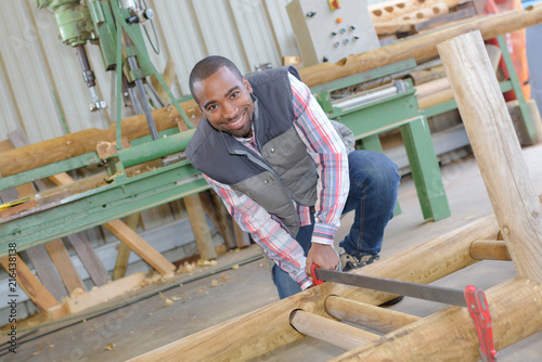 carpenter making furniture in workshop