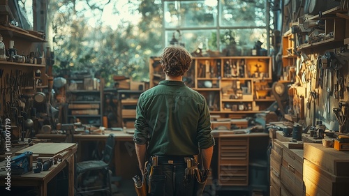carpenter, workshop, tool, wood, craftsmanship, dedication, bright, creative, practical, industrial, workspace, detail, hand, engineering, skilled, functional, innovation, rustic, styled, light, organised, artistic, professional, focused, woodwork, vibrant, crafted, intricate, precision, detailed, harmonious, inspiring, productive, structured, manual, textured, dynamic, bold