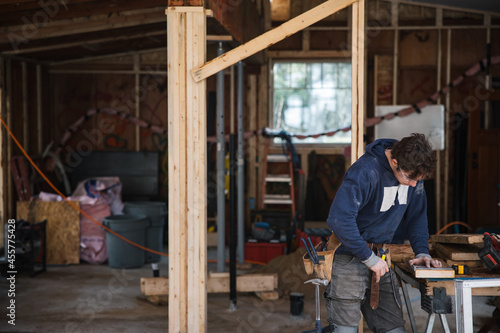 architecture, build, builder, building, carpenter, carpenter's shop, construction, documentary, framing, house, industry, plywood, real, renovation, unfinished, winter, wood, work
